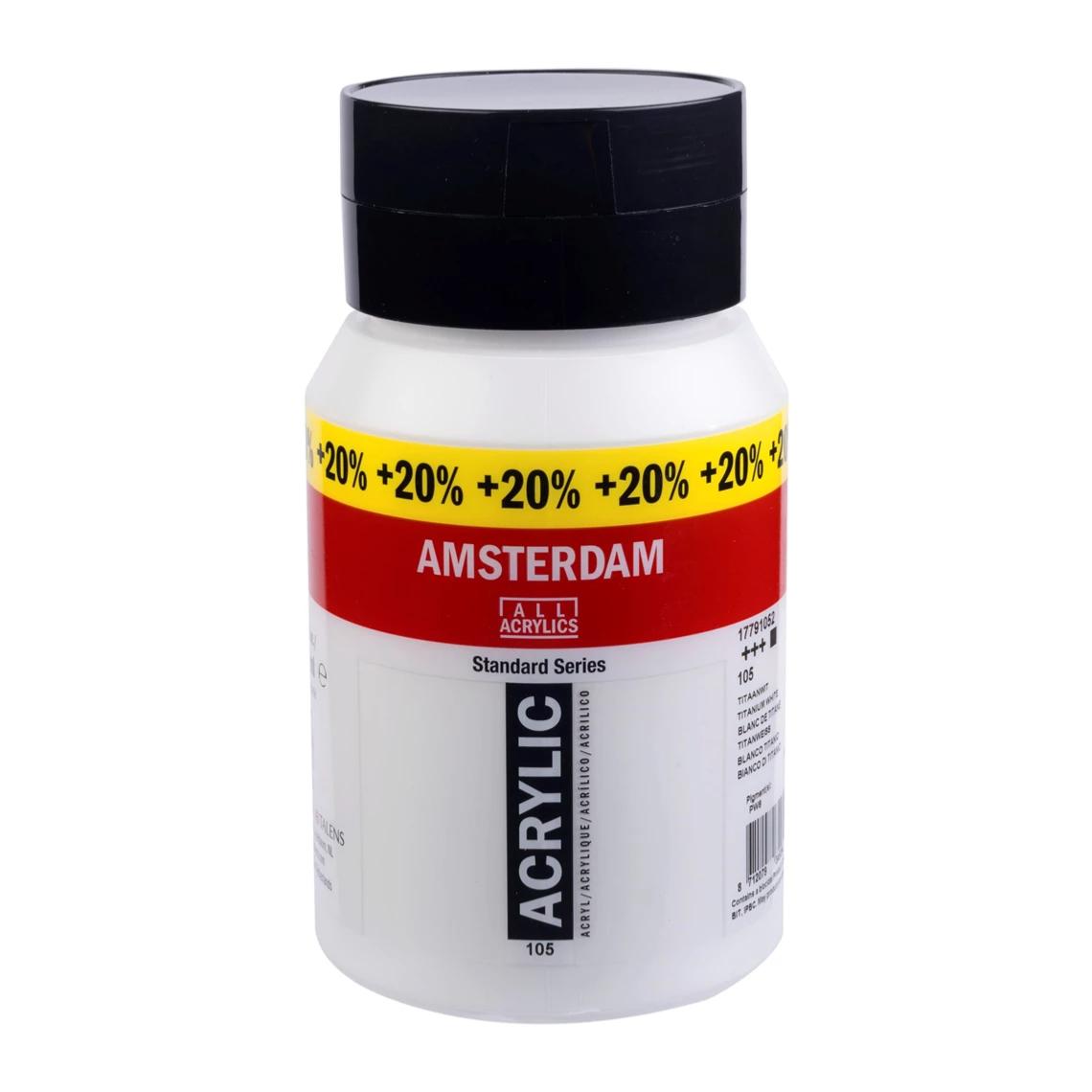 La peinture acrylique de la gamme Amsterdam Standard Series en Blanc de Titane (105) est une couleur opaque avec une excellente résistance à la lumière (+++).