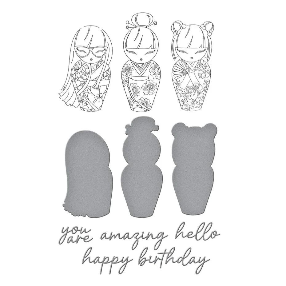 BetterPress plate and die set - Kokeshi dolls - Kyoto
