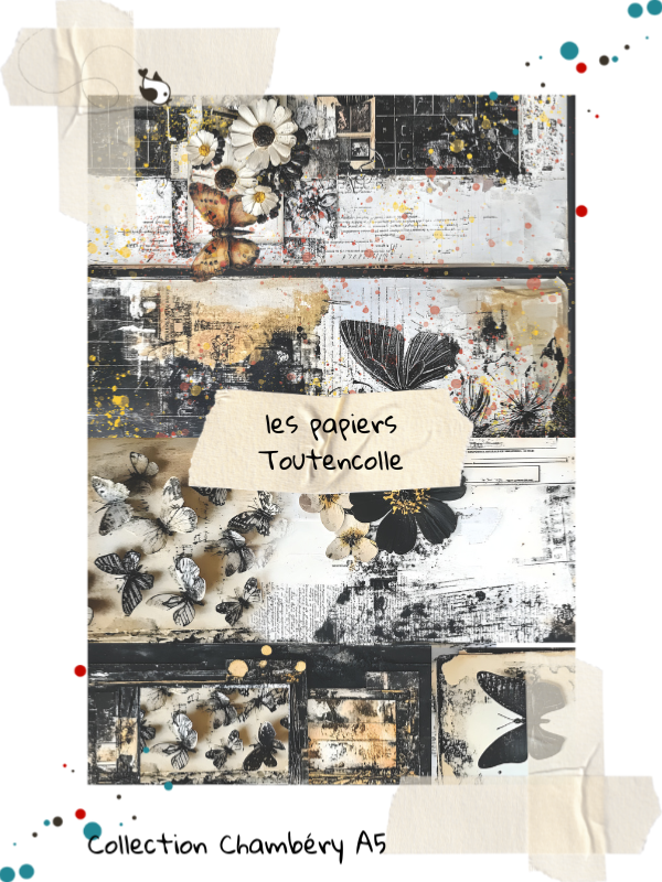 • Vous utiliserez les papiers Toutencolle dans vos album scrap, vos projets en carterie, vos art journaux et aussi si vous êtes adeptes du junk journal