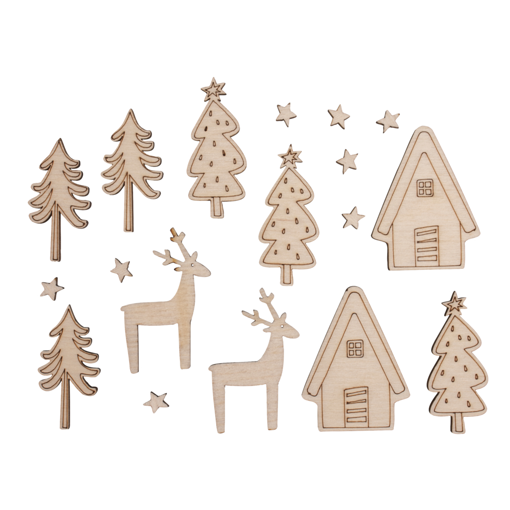 Lot de petites miniatures en bois léger avec détails gravés