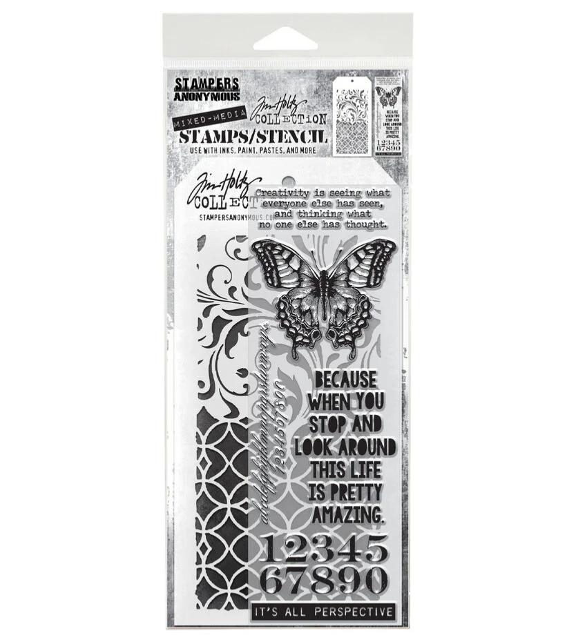 Mixed media stamp and stencil set Stampers Anonymous by Tim Holtz